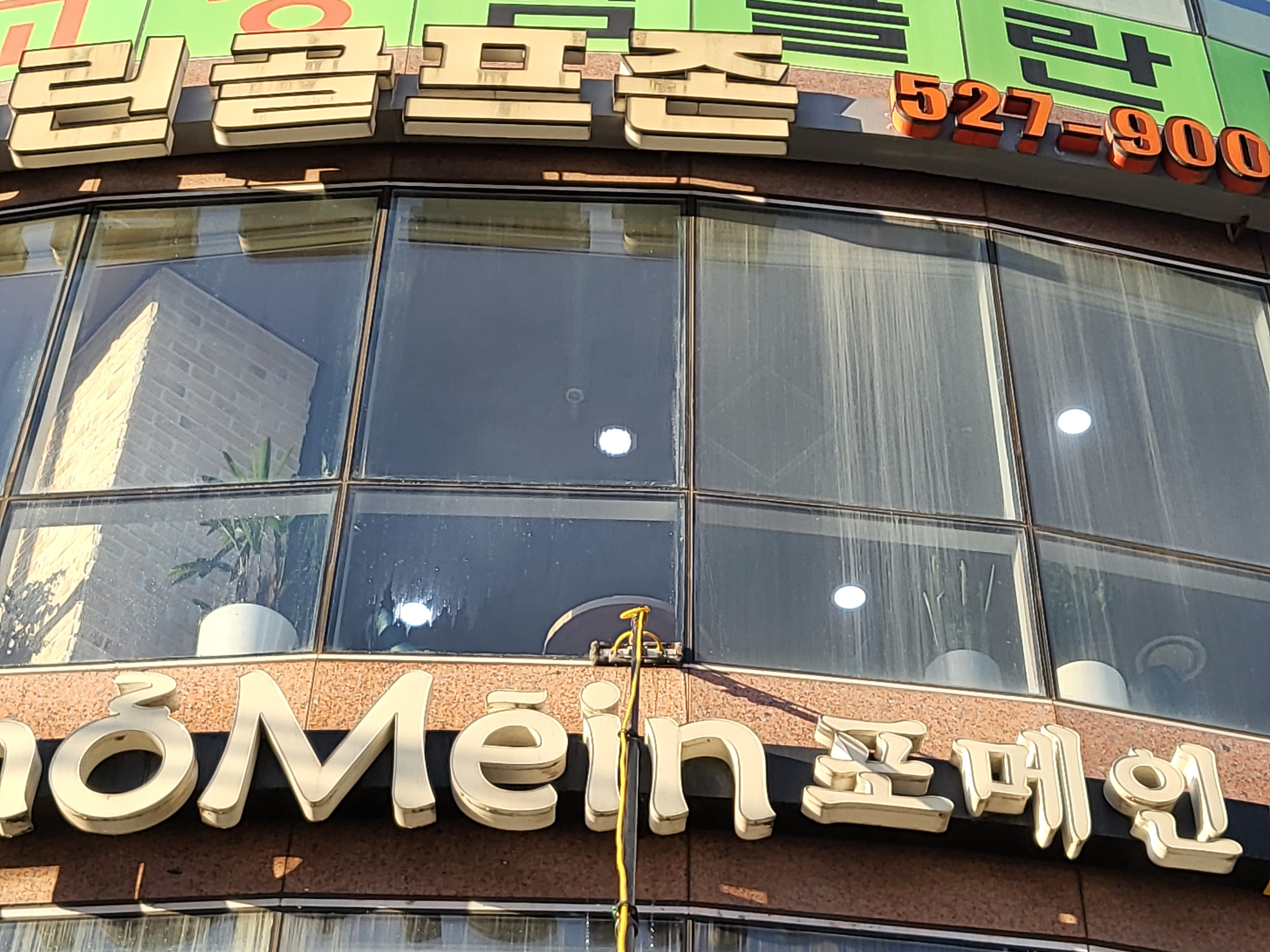 골프연습장 3층 그리고 2층 포메인의 외부유리창 청소 예시를 보여드립니다.